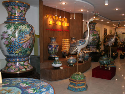 (6)镀金:是景泰蓝生产工艺中最后一道主要工序,是为了防止产品的氧化,使之更耐久、更美观,在产品表面镀上一层黄金。将产品挂入金液槽中通上电流进行镀金,镀好后取出,用清水冲洗干净,再用锯末蚀干。整个工序完成,一件金灿灿、亮闪闪、雍容华贵、端庄典雅的景泰蓝工艺品便诞生了。